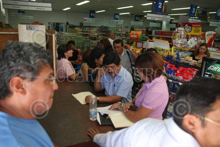 CHETUMAL, QUINTANA ROO, 12ABRIL2011.- Al menos cuarenta trabajadores sindicalizados de la tienda de autoservicio ISSTE se manifiestan en el interior del supermercado en apoyo a tres compañeras trabajadoras que fueron cesadas de manera arbitrarias cuando descubrieron un desfalco en manos de los encargados de la tienda. Estas mujeres el descubrir el hecho fueron retenidas contra su voluntad y privadas de su libertad para evitar el escanda público. FOTO: MARCO POLO GUZMÁN HERNÁNDEZ/CUARTOSCURO.COM