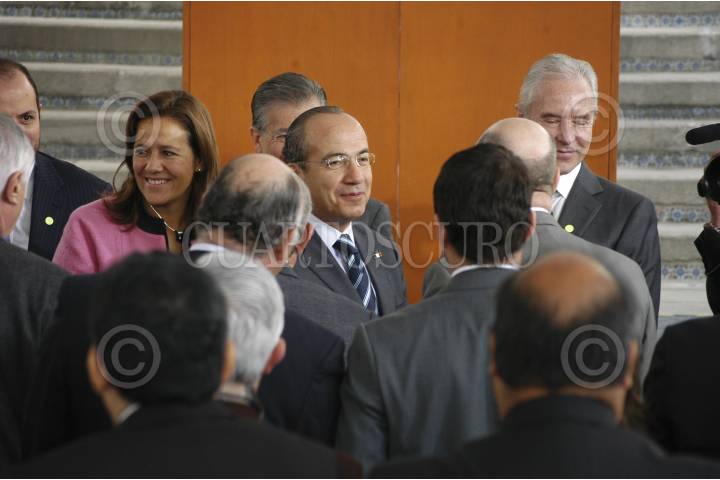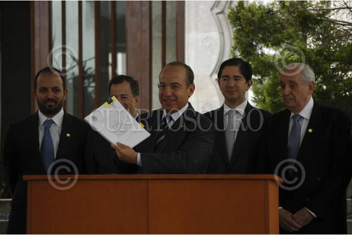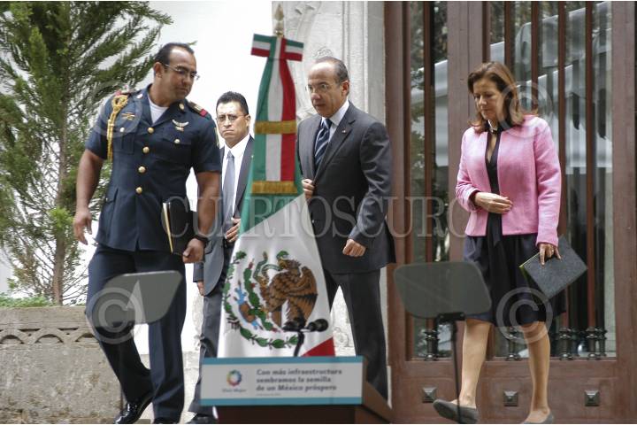 MÉXICO, D.F., 15ENERO2012.- Felipe Calderón Hinojosa, Presidente de México, acompañado de su esposa Margarita Zavala, realizo la firma del Decreto por el que se Expide la Ley de Asociaciones Publico Privadas, la cual fue realizada en las escalinatas de la Residencia Oficial de los Pinos. FOTO: GUILLERMO PEREA/CUARTOSCURO.COM