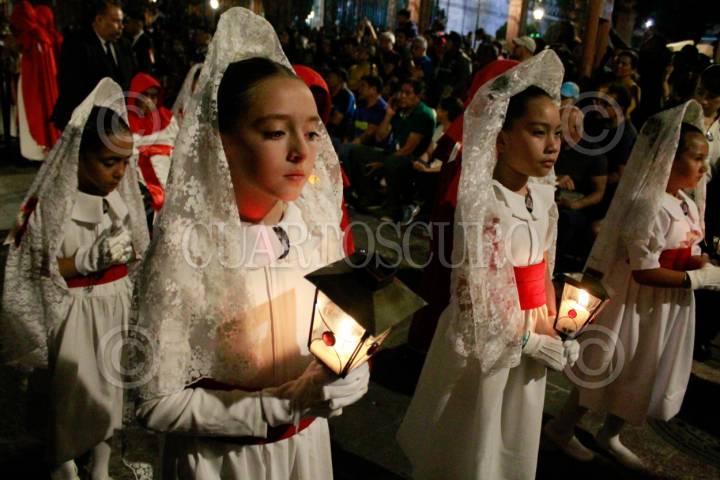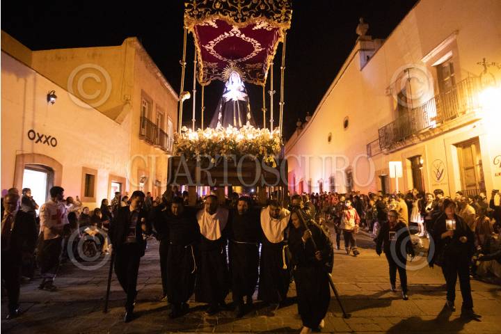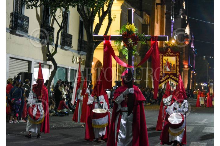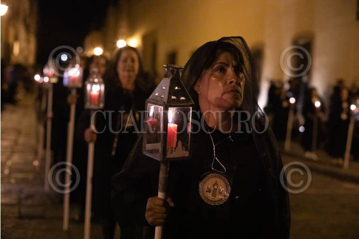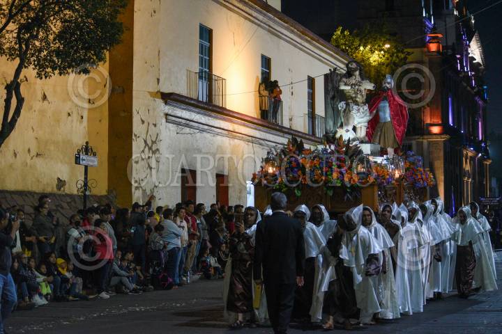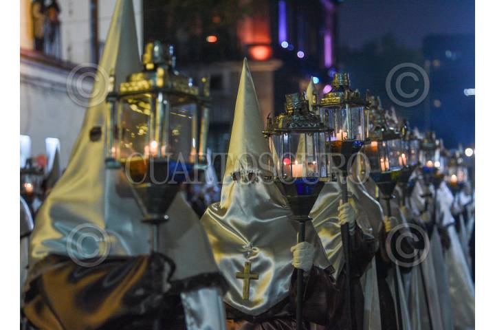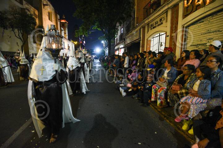 QUERÉTARO, QUERÉTARO, 29MARZO2024.- Desde hace más de cincuenta años, en Santiago de Querétaro se lleva a cabo la Procesión del Silencio que tiene lugar el Viernes Santo por la tarde. En las principales calles del Centro Histórico, diferentes grupos de Hermandades y Cofradías realizan un recorrido manifestando su gran dolor por la muerte de Jesucristo. FOTO: CÉSAR GÓMEZ/CUARTOSCURO.COM