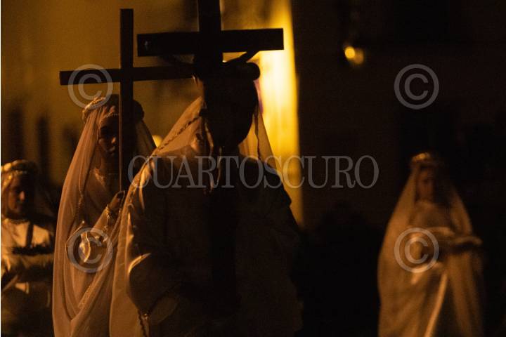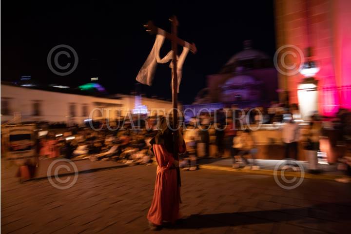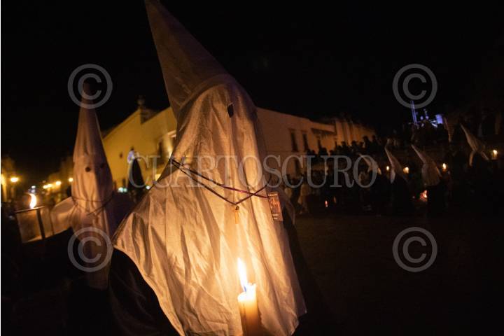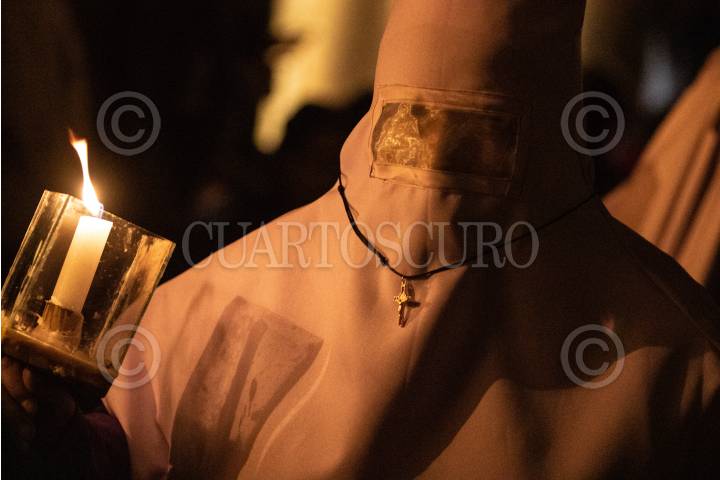 SAN LUIS POTOSÍ, S.L.P., 31MARZO2024.- El día de ayer se llevó a cabo la Procesión del Silencio en San Luis Potosí se realizó este Viernes Santo para conmemorar la Pasión y Muerte de Cristo durante un recorrido de las principales calles de la capital potosina por parte de las diferentes cofradías. Esta procesión fue declarada en 2013 como parte del patrimonio cultural del estado. FOTO: MARCELO PALACIOS/CUARTOSCURO.COM