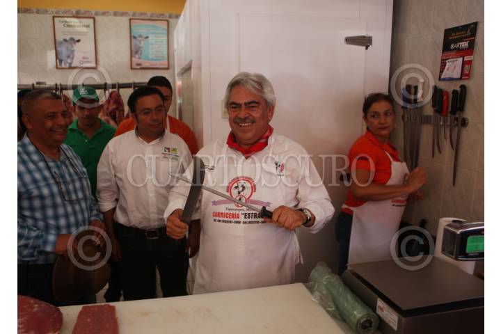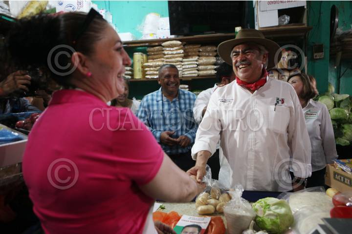 TEPALCATEPEC, MICHOACÁN, 06ABRIL2015.- El candidato a Gobernador por el Partido Revolucionario Institucional (PRI), Ascención Orihuela Bárcenas, realizó acto proselitista en el mercado municipal donde convivio con los locatarios. FOTO: ALAN ORTEGA /CUARTOSCURO.COM