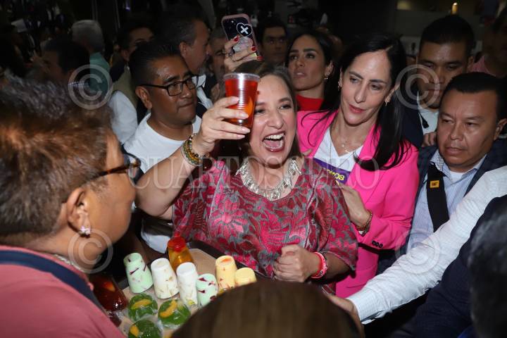 Festejo por el triunfo de la senadora Xóchitl Gálvez en la segunda encuesta del proceso interno de selección del Frente Amplio por México.