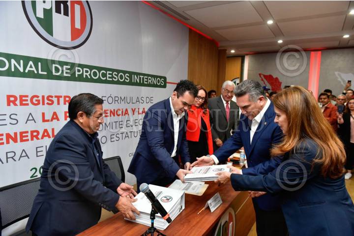 CIUDAD DE MÉXICO, 22JULIO2024.- Alejandro Moreno y Carolina Viggiano acudieron a registrarse para participar en el proceso interno de elección de las personas titulares de la Presidencia y la Secretaría General del Comité Ejecutivo Nacional (CEN) del Partido Revolucionario Institucional (PRI), para el periodo estatutario 2024-2028. Alejandro Moreno quien aspira a reelegirse como dirigente nacional propuso: "hacer cumplir los resolutivos de la XXIV Asamblea Nacional del PRI y poner en marcha los foros respectivos, “para impulsar la reforma más profunda del partido”. FOTO: CEN DEL PRI/CUARTOSCURO.COM