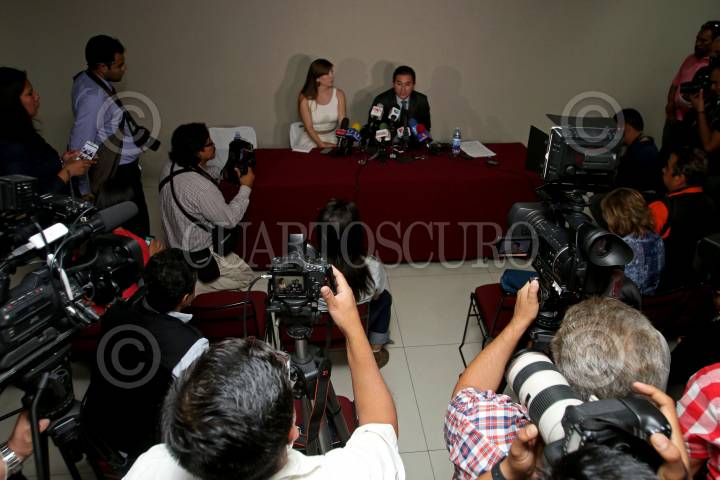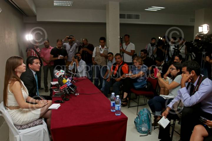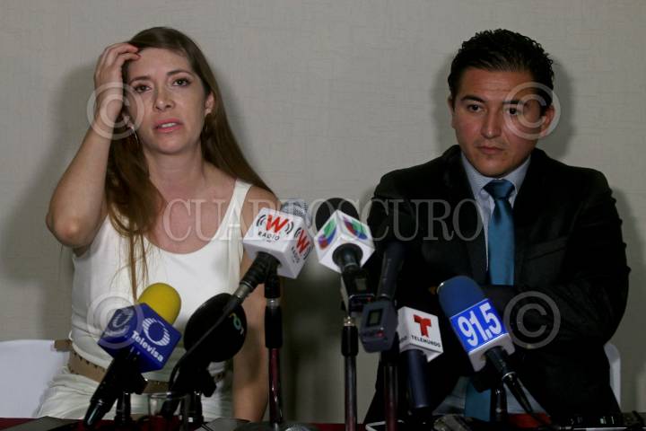 GUADALJARA, JALISCO, 09MAYO2016.- Yohana Fonseca hija de Ernesto Fonseca Carrillo “Don Neto” y Ernesto del Castillo abogado defensor, ofrecieron una conferencia de prensa en un conocido hotel de la ciudad, para dar a conocer algunos temas relacionados con el proceso penal que enfrenta el Sr. Ernesto Fonseca en el penal de máxima seguridad de Puente Grande. FOTO : FERNANDO CARRANZA GARCIA / CUARTOSCURO.COM