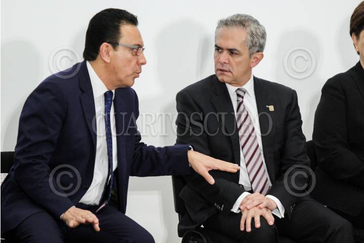CIUDAD DE MÉXICO, 04JULIO2017.- Omar Fayad, gobernador del estado de Hidalgo, y Miguel Ángel Mancera, jefe de gobierno de la Ciudad de México y presidente de la Conferencia Nacional de Gobernadores (CONAGO), durante el foro para el Fortalecimiento al Sistema Procesal Penal. FOTO: GALO CAÑAS /CUARTOSCURO.COM
