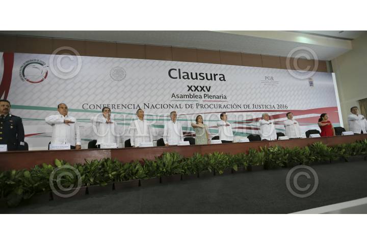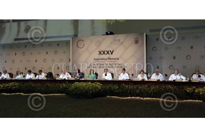 CAMPECHE, CAMPECHE 07JULIO2016.- Arely Gómez, procuradora general de la república, acompañado del presidente de la mesa directiva del Senado, Roberto Gil, y procuradores de justicia del país durante el primer día de trabajos de la XXXV Asamblea Plenaria de la Conferencia Nacional de Procuración de Justicia que se realiza en la ciudad de Campeche. FOTO: PGR /CUARTOSCURO.COM