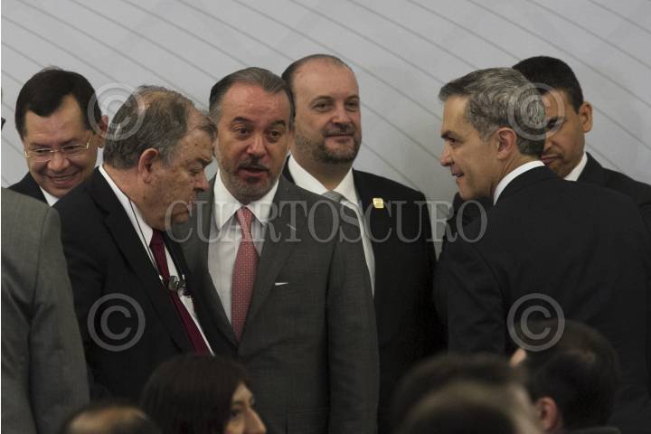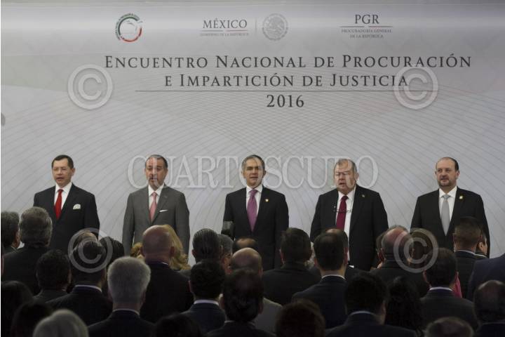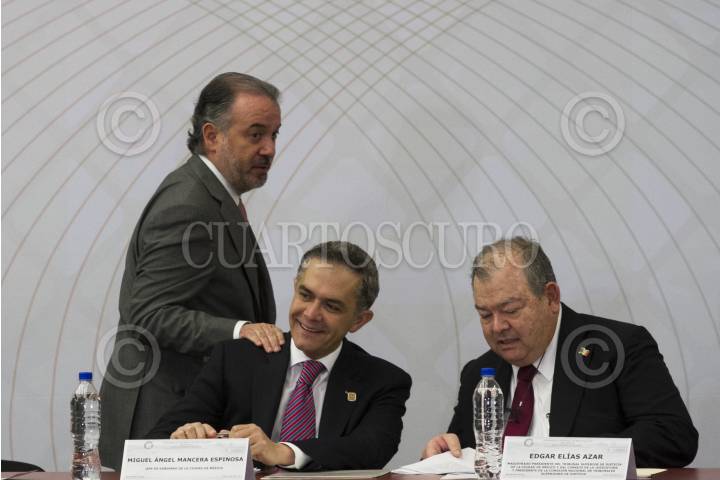 CIUDAD DE MÉXICO, 08DICIEMBRE2016.- Álvaro Vizcaíno Zamora, secretario ejecutivo del Sistema Nacional de Seguridad Pública; Raúl Cervantes Andrade, Procurador General de la República; Miguel Ángel Mancera, Jefe de Gobierno; Edgar Elías Azar, presiente del Tribunal Superior de Justicia de la Ciudad de México, y Rodolfo Ríos Garza, Procurador General de Justicia de la CDMX, estuvieron presentes en el "Encuentro nacional de procuración e impartición de justicia 2016", que se realizó en la sede del TSJCDMX" FOTO: MOISÉS PABLO /CUARTOSCURO.COM