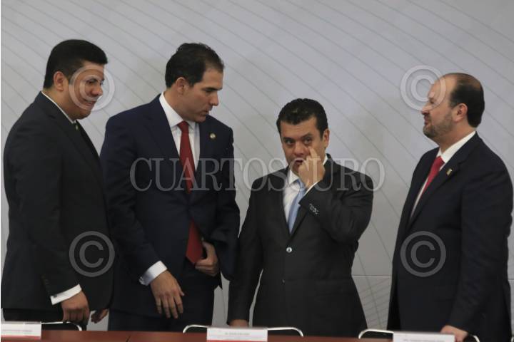 CIUDAD DE MÉXICO, 09DICIEMBRE2016.- Javier Bolaños, presidente de la mesa directiva de la Cámara de Diputados, Pablo Escudero, presidente de la mesa directiva del Senado de la República, Humberto Castillejos, Consejero Jurídico de la Presidencia de la República y Rodolfo Ríos Garza, procurador de la Ciudad de México durante la clausura del Encuentro Nacional de Procuración e Impartición de Justicia realizado en Ciudad Judicial. FOTO: SAÚL LÓPEZ /CUARTOSCURO.COM