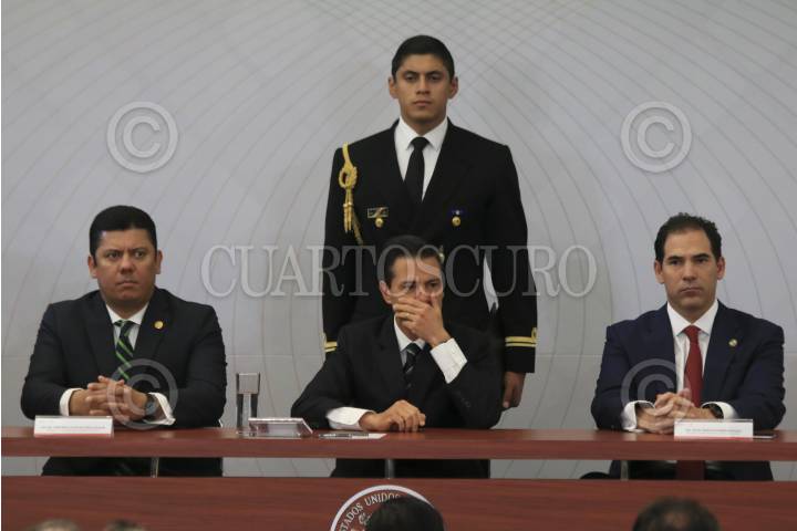 CIUDAD DE MÉXICO, 09DICIEMBRE2016.- Javier Bolaños, presidente de la mesa directiva de la Cámara de Diputados, Pablo Escudero, presidente de la mesa directiva del Senado de la República y Humberto Castillejos, Consejero Jurídico de la Presidencia de la Repúbluca, durante la clausura del Encuentro Nacional de Procuración e Impartición de Justicia realizado en Ciudad Judicial. FOTO: SAÚL LÓPEZ /CUARTOSCURO.COM