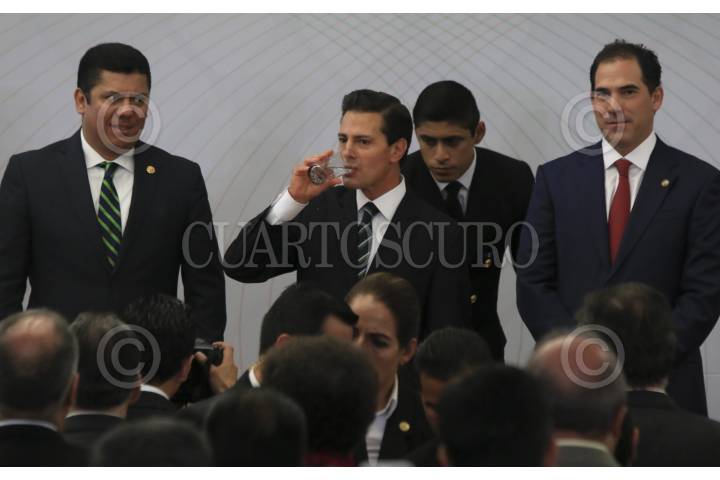 CIUDAD DE MÉXICO, 09DICIEMBRE2016.- Javier Bolaños, presidente de la mesa directiva de la Cámara de Diputados, Enrique Peña Nieto, presidente de la república y Pablo Escudero, presidente de la mesa directiva del Senado de la República, durante la clausura del Encuentro Nacional de Procuración e Impartición de Justicia realizado en Ciudad Judicial. FOTO: SAÚL LÓPEZ /CUARTOSCURO.COM