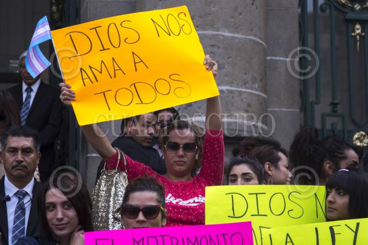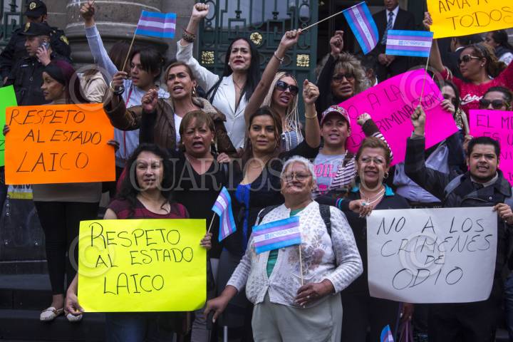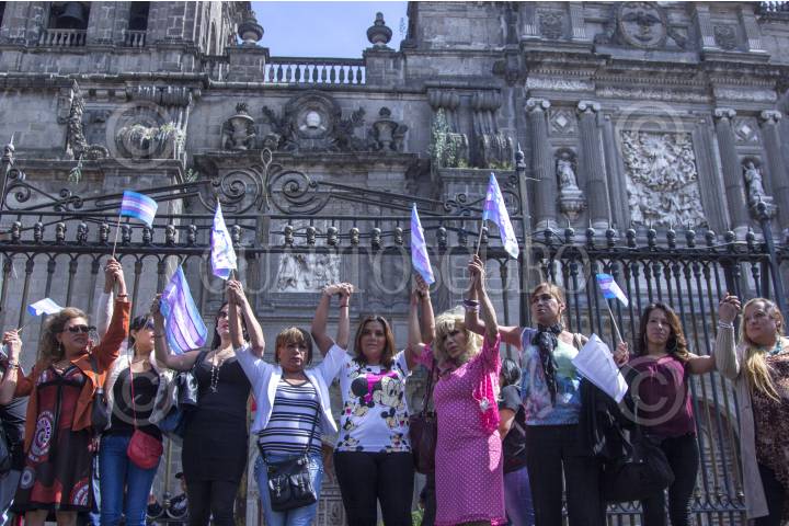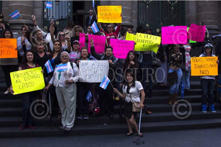 MÉXICO, D.F., 02SEPTIEMBRE2015.- Un grupo de personas de la comunidad Transexual encabezadas por Diana Sánchez Barrios, Dirigente de la Asociación Civil PRODIANA, se manifestaron a las afueras de la Asamblea legislativa donde el día de hoy, diputados perredistas, presentaran una minuta de acuerdo para exigir, secén las declaraciones presuntamente homofóbicas que realiza el Cardenal Norberto Rivera Carrera en las misas dominicales en la Catedral Metropolitana las cuales según Diana Barrios incitan a la violencia contra personas lesbianas, gays, bisexuales, travestis, transexuales, transgénero e intersexuales. FOTO: ENRIQUE ORDÓÑEZ /CUARTOSCURO.COM