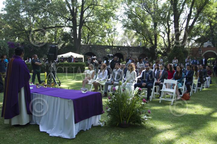 MÉXICO, D.F., 09MARZO2015.- Alejandra Lazcano y Alberto Guerra durante la misa de inicio de grabación de la nueva producción de Azteca novelas Caminos de Guanajuato. FOTO: ISABEL MATEOS /CUARTOSCURO.COM
