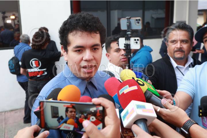 CIUDAD DE MÉXICO, 06FEBRERO2025. El productor Luis Ángel García habla con los medios de comunicación acerca de la ausencia de Imelda Tuñón en el estreno de la obra “Motel” en la cual actúa, durante el estreno de la 4ta Temporada de “Teatro en Breve”. FOTO: EDGAR NEGRETE LIRA/CUARTOSCURO.COM