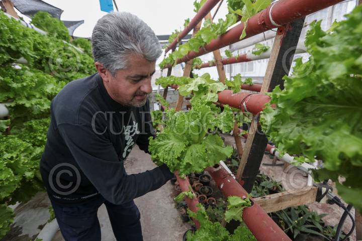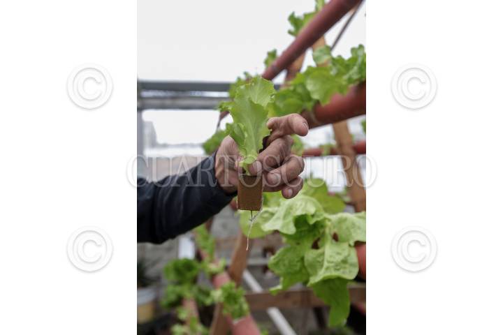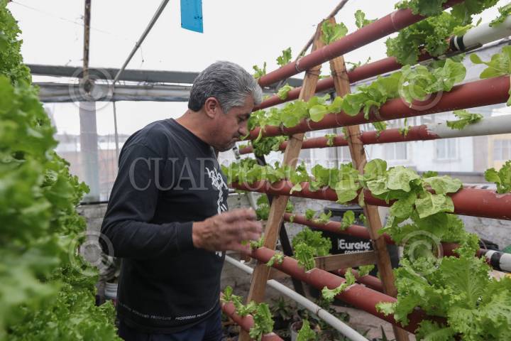 TOLUCA, ESTADO DE MÉXICO, 17SEPTIEMBRE2019.- Por más de 30 años Abraham López se ha dedicado a realizar y enseñar eco-técnicas, busca que la población se interese en la creación de huertos urbanos; la hidroponía es un método de cultivo en el que no se utiliza tierra si no agua, las semillas son sembradas en charolas, al germinar son transplantas a un sistema de circulación de agua casero, construido con tubos de PVC en donde crecerán las plantas, de esta forma se evita el uso de químicos, la gente aprovecha los espacios urbanos y tiene una alimentación saludable. FOTO: CRISANTA ESPINOSA AGUILAR /CUARTOSCURO.COM