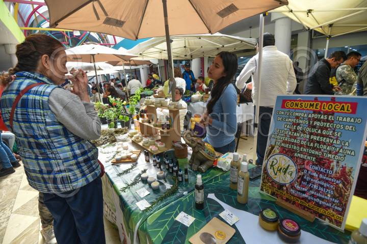 El mercadito verde que se instala en la Concha Acústica en Toluca ha regresado al llevar varios meses fuera de este lugar debido a la pandemia por COVID-19, productos orgánicos y de productores locales es lo que se oferta en este lugar.