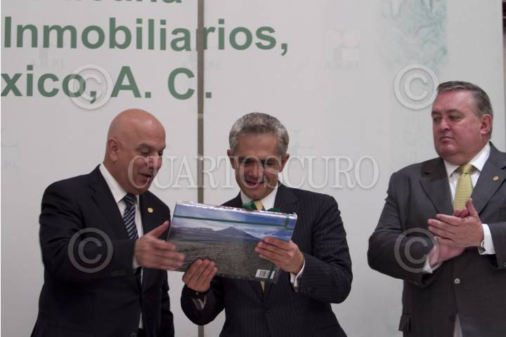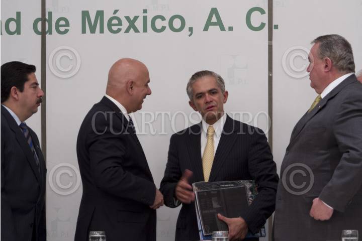 MÉXICO, D.F., 26ABRIL2012.- Miguel Ángel Mancera, candidato de las izquierdas para jefe de Gobierno del Distrito Federal se reunió con integrantes de la Asociación Mexicana de Profesionales Inmobiliarios, en un hotel de la zona de Polanco. El candidato es acompañado de Juan Dios Barba Presidente del Consejo Económico y Socia del D.F. Alejandro Kuri Pheres, Presidente de AMPI y de Roberto Barrios Gaxiola, Vicepresidente de AMPI. FOTO: GUILLERMO PEREA /CUARTOSCURO.COM