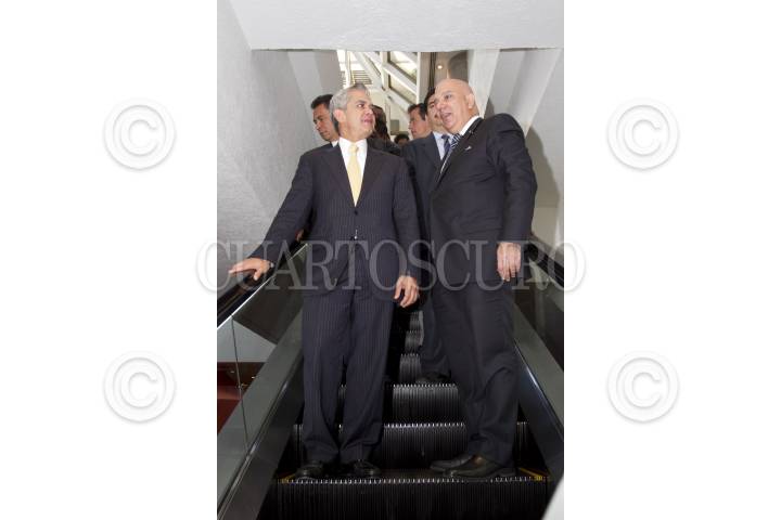 MÉXICO, D.F., 26ABRIL2012.- Miguel Ángel Mancera, candidato de las izquierdas para jefe de Gobierno del Distrito Federal se reunió con integrantes de la Asociación Mexicana de Profesionales Inmobiliarios, en un hotel de la zona de Polanco. El candidato es acompañado de Alejandro Kuri Pheres, Presidente de AMPI. FOTO: GUILLERMO PEREA /CUARTOSCURO.COM