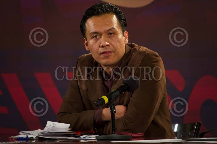 Marx Arriaga Navarro, durante la presentación de los nuevos libros de la SEP en Palacio Nacional.