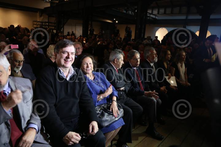 MÉXICO D.F. 22ENERO2015.- El senador Alejandro Encinas Rodriguez acompañado del ingeniero Cuauhtémoc Cárdenas Solorzano, Ifigenia Martibez, Porfirio Muñoz Ledo y Marcelo Ebrard durante el segundo informe de actividades del legislador llevado acabo en el Centro Cultural Indianilla. FOTO: SAÚL LÓPEZ /CUARTOSCURO.COM