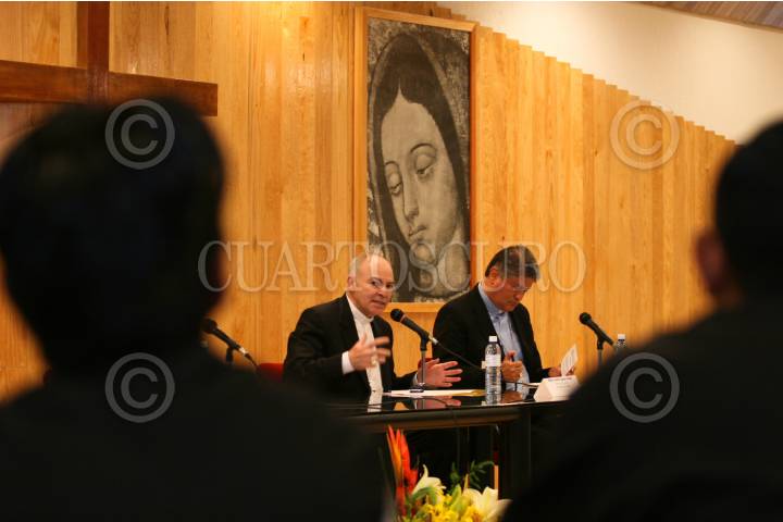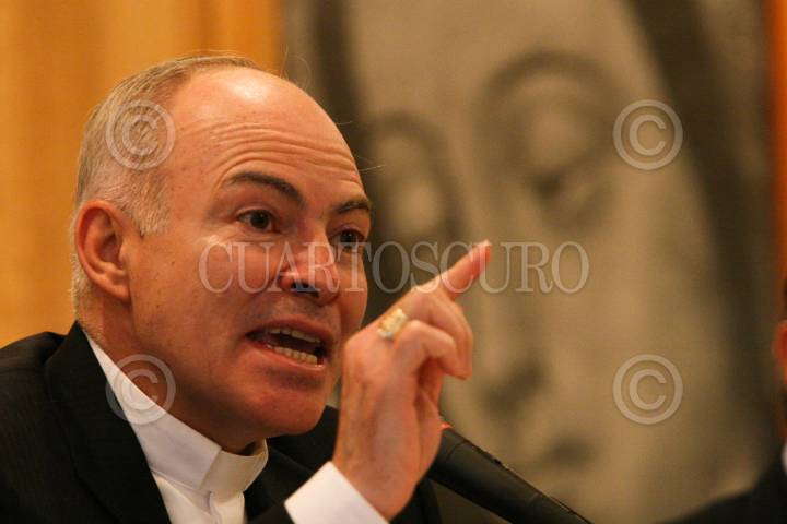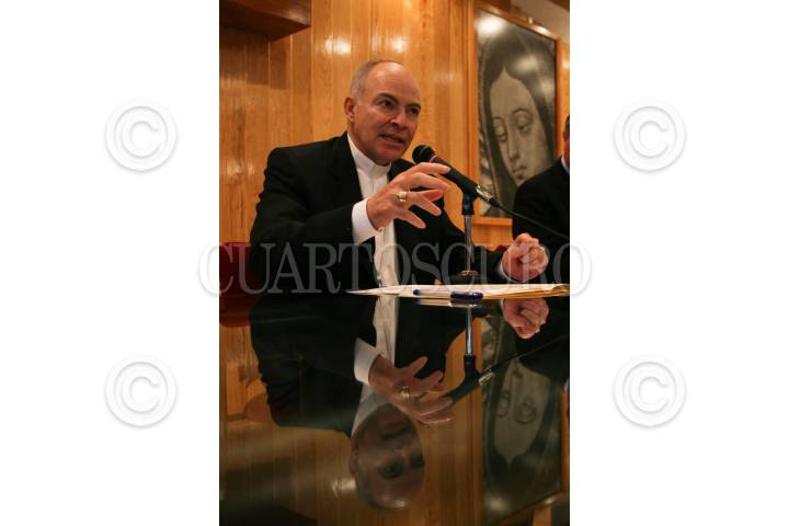 CUAHUTITLAN, EDO. DE MÉX. 04ABRIL2008.-Carlos Aguilar Retes, obispo de Texcoco y presidente de la CEM, durante la conferencia de prensa, donde menciono que si hay apayo para extraer el petroleo de aguas profundas en el país habria que aceptarla, esto en las instalaciones del Episcopado Mexicano. FOTO: GUILLERMO PEREA /CUARTOSCURO.COM