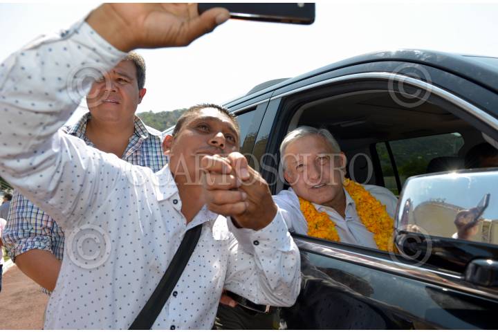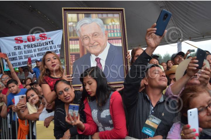IGUALA, GUERRERO, 07FEBRERO2019.- Andrés Manuel López Obrador, Presidente de México, entregó apoyos a jóvenes y madres, como parte del programa de Bienestar para las Familias. Al finalizar el evento el gobernador de la entidad, Héctor Astudillo, y Antonio Salvador Jaimes Herrera, presidente municipal de Igual, le regalaron un retrato al Jefe del Ejecutivo realizado por el artista Luis Alberto Castañeda Castro. FOTO: GOBIERNO DE LA REPÚBLICA /CUARTOSCURO.COM