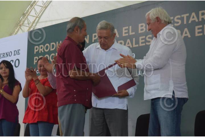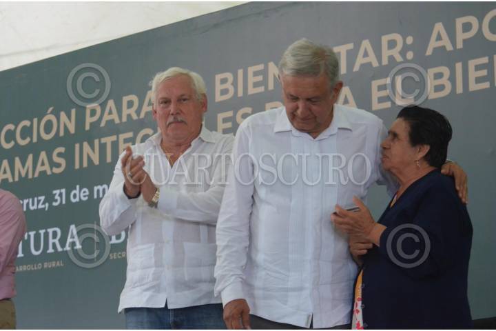 COATEPEC, VERACRUZ, 31MAYO2019.- Andrés Manuel López Obrador, Presidente de México; Víctor Villalobos, secretario de Agricultura, y Cuitláhuac García, gobernador de la entidad, encabezaron la entrega de apoyos del programa "Producción para el Bienestar: Apoyo a Cafeticultores". FOTO: ANDRÉS YAÑEZ /CUARTOSCURO.COM