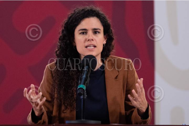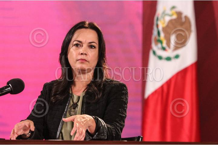 Luisa María Alcalde Luján, Secretaria del Trabajo y Previsión Social, encabezó el informe diario del Programa de Bienestar en Palacio Nacional