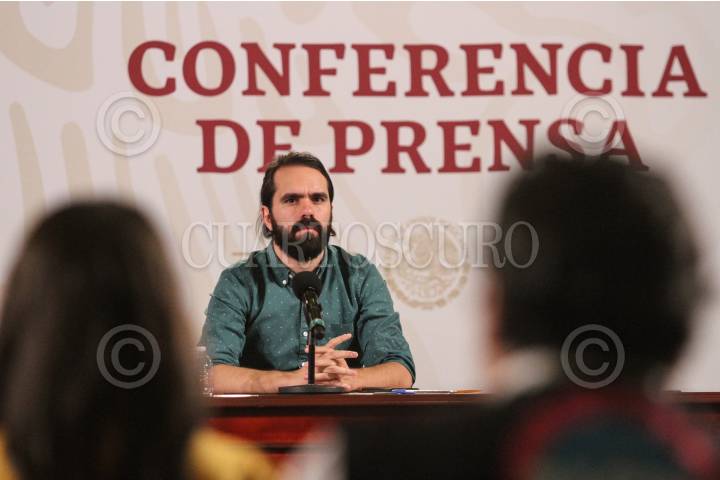 Rodrigo Ramírez, durante la conferencia de Bienestar en el salón Tesorería de Palacio Nacional.