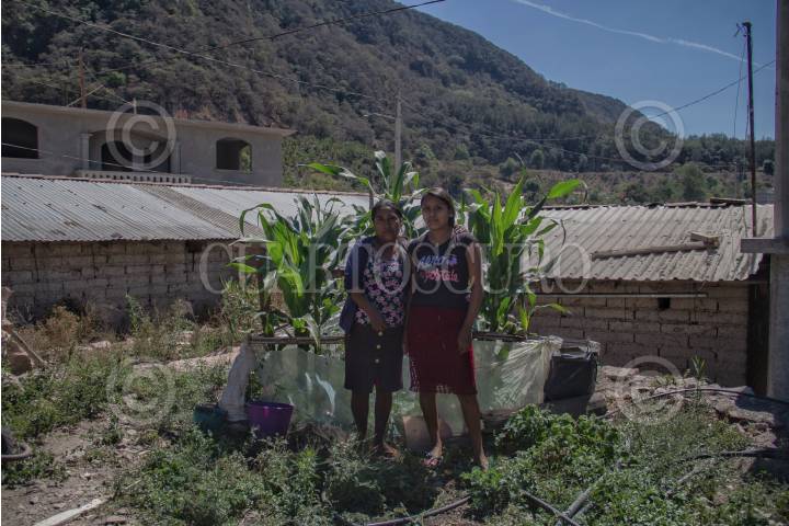 Lourdes y su hija posan en el terreno que limpiaron para poder construir una casa con el apoyo que les habían ofrecido como parte del programa bienestar, este nunca llego. Lourdes es viuda por la violencia que se vive en Chilapa