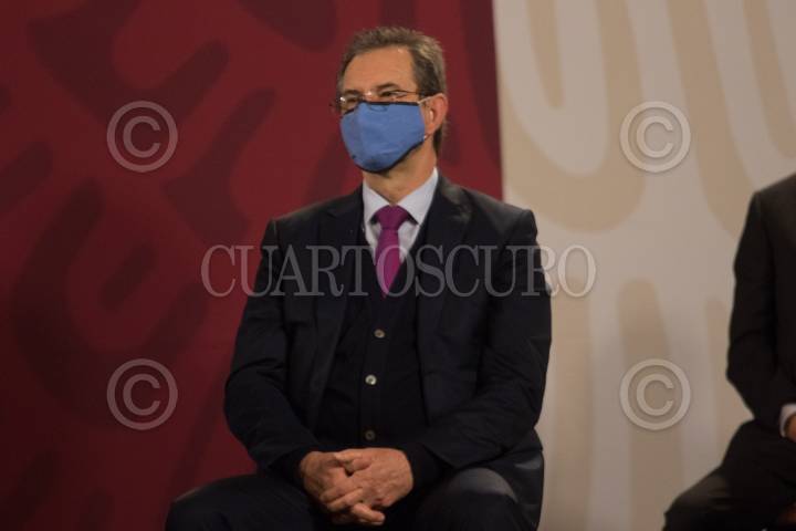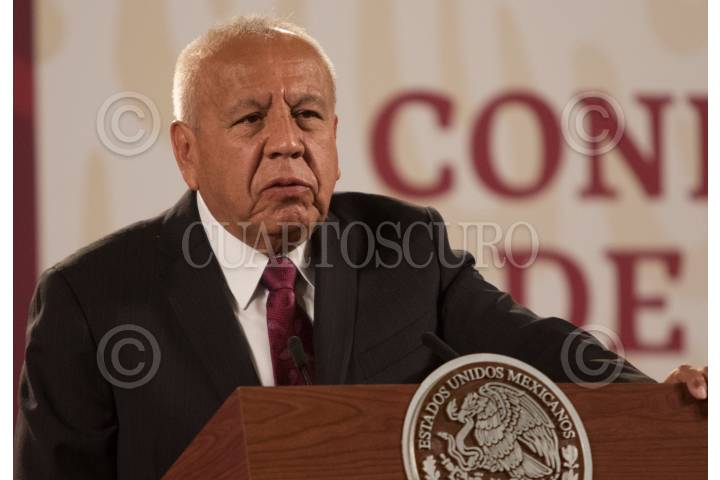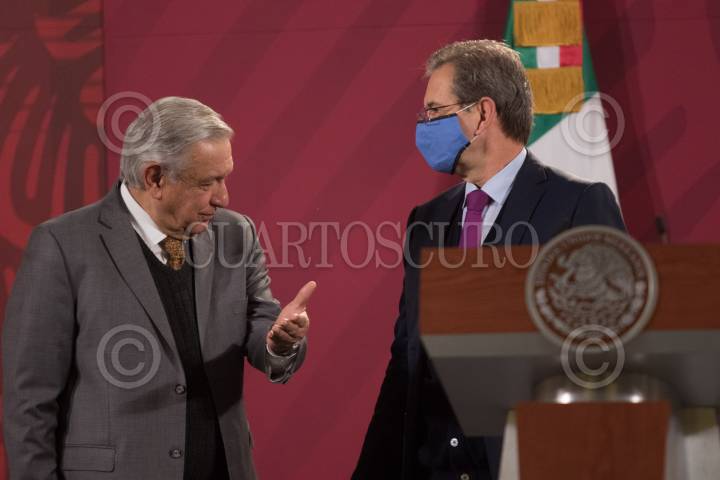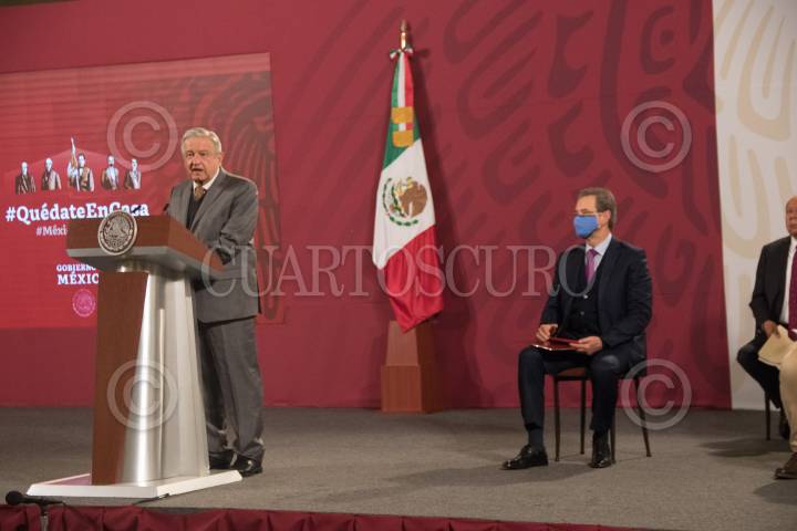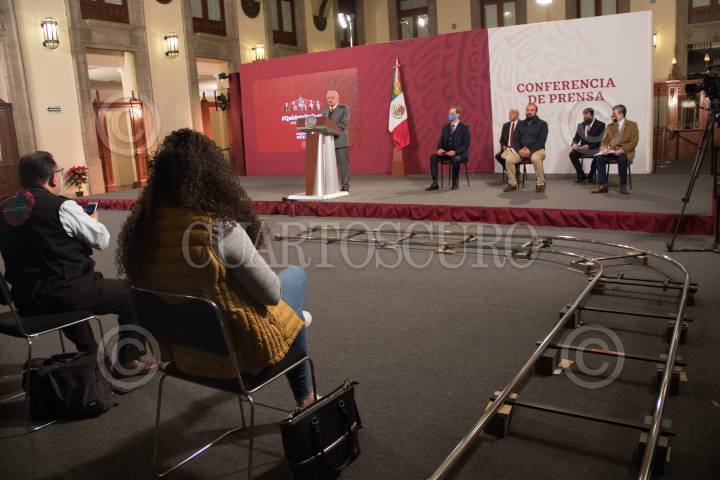 El Presidente Andrés Manuel López Obrador en la conferencia de cada mañana, en el salón tesorería de Palacio Nacional.