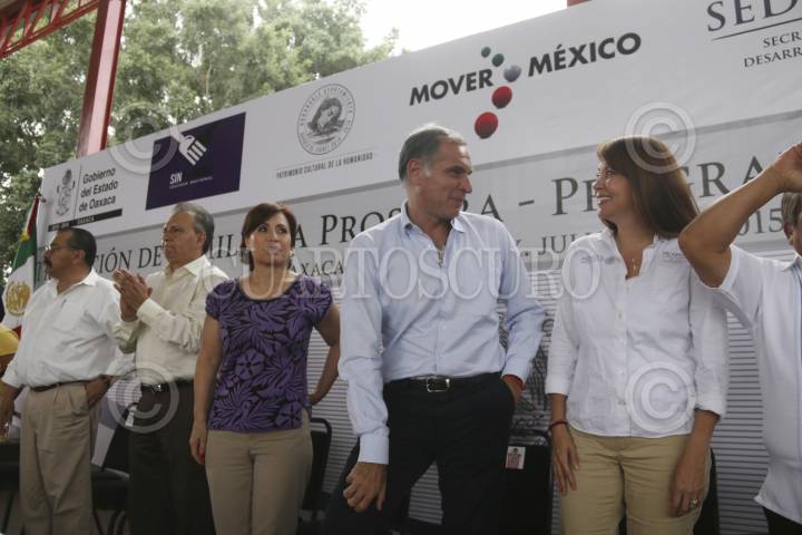 OAXACA, OAXACA, 31JULIO2015.- La secretaria de Desarrollo Social, Rosario Robles realizó una gira de trabajo por la entidad, sin embargo en la agencia municipal de 5 Señores, un grupo de agentes municipales protestaron previo y durante el evento, por lo que la funcionario federal se levantó de su lugar y les pidió bajar sus pancartas, ante la negativa de los manifestantes, bajó del templete y dialogó con ellos. Los agentes se quejaron del delegado de Prospera, Jorge Zárate y del director de Liconsa, Héctor Pablo Ramírez Puga, quienes aseguran están más ocupados en hacer campaña que en brindar los apoyos necesarios. FOTO: ARTURO PÉREZ ALFONSO /CUARTOSCURO.COM