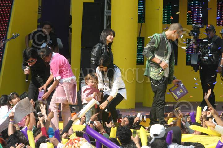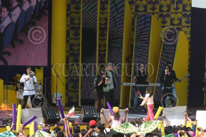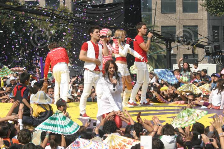 MÉXICO, D.F., 06DICIEMBRE2008.- Como parte de las actividades programadas por el Teleton esta mañana salió un desfile, que partió desde el Auditorio Nacional hasta el monumento a a la revolución donde culmino con un concierto masivo, en la imágen los integrantes de la nueva banda timbiriche. FOTO: SÁSHENKA GUTIÉRREZ/CUARTOSCURO.COM