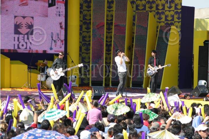 MÉXICO, D.F., 06DICIEMBRE2008.- Como parte de las actividades programadas por el Teleton esta mañana salió un desfile, que partió desde el Auditorio Nacional hasta el monumento a a la revolución donde culmino con un concierto masivo, en la imágen el grupo Motel FOTO: SÁSHENKA GUTIÉRREZ/CUARTOSCURO.COM