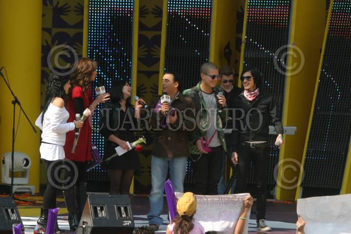 MÉXICO, D.F., 06DICIEMBRE2008.- Como parte de las actividades programadas por el Teleton esta mañana salió un desfile, que partió desde el Auditorio Nacional hasta el monumento a a la revolución donde culmino con un concierto masivo, en la imágen los integreantes del grupo Kudai FOTO: SÁSHENKA GUTIÉRREZ/CUARTOSCURO.COM