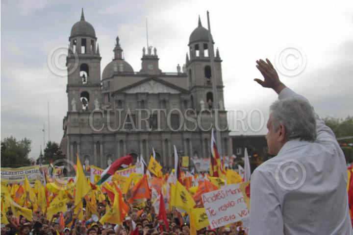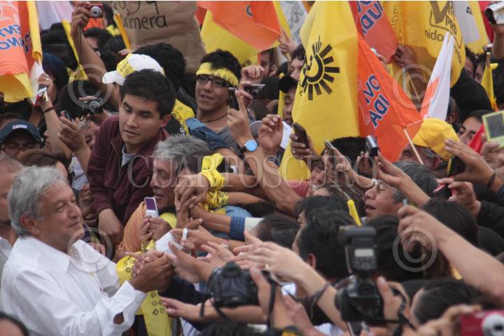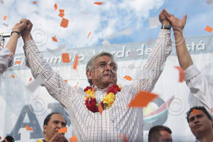 MORELIA, MICHOACÁN, 25JUNIO2012.- Andrés Manuel López Obrador, candidato de la Coalición Movimiento Progresista a la rpesidencia de la república, encabezó un cierre de campaña en la capital del estado. FOTO: IVÁN STEPHENS /CUARTOSCURO.COM