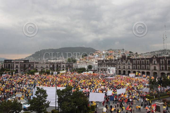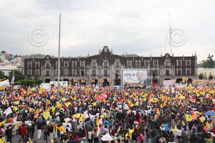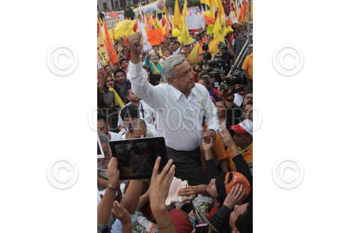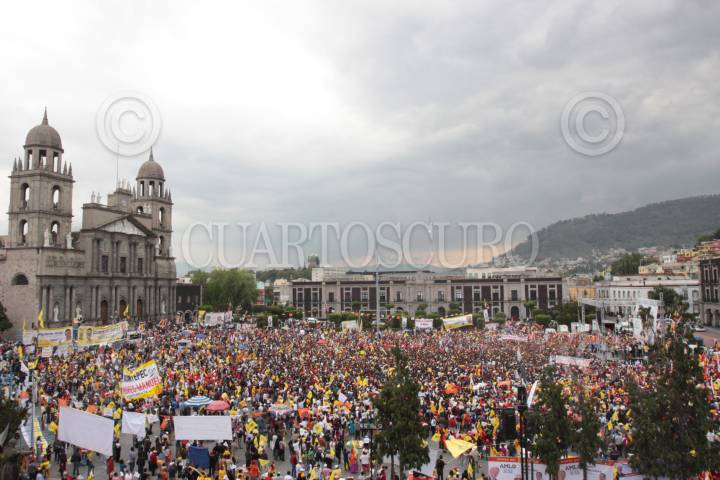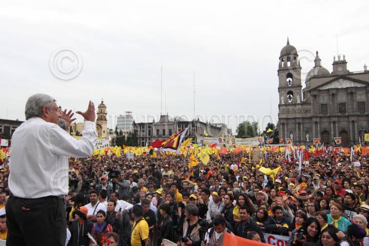 TOLUCA, ESTADO DE MEXICO, 26JUNIO2012.- Andrés Manuel López Obrador, candidato de la Coalición Movimiento Progresista (PRD, PT, MC) a la presidencia de la república, encabezó un mítin de cierre de campaña en la Plaza de los Mártires. FOTO: IVÁN STEPHENS /CUARTOSCURO.COM