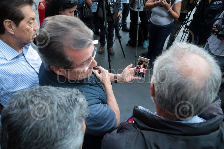 CUERNAVACA, MORELOS, 23ENERO2018.-Minutos antes de las 16:00 horas el ex rector de la Universidad Autónoma del Estado de Morelos, Alejandro Vera Jiménez fue detenido por agentes de la Fiscalía Anticorrupción, mientras comía en un restaurante del norte de la ciudad. El ex funcionario universitario enfrenta varios procesos judiciales. Miembros del Frente Amplio Progresista dieron una conferencia de prensa en el zócalo de la ciudad y denunciaron, según sus dichos, una desaparición forzada y secuestro, responsabilizan al gobernador, Graco Ramírez Abreu, de lo que pudiera pasarle. FOTO: MARGARITO PÉREZ RETANA /CUARTOSCURO.COM