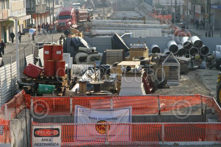 MÉXICO D.F., 07ENERO2010.- Aspectos de la avenida Ermita Iztapalapa a la altura de calle Centeno en donde se realiza la construcción de la linea 12 del metro en donde el jefe de gobierno del Distrito Federal, Marcelo Ebrard Casaubon, puso en operación el escudo, una gigantesca excavadora encargada de hacer el túnel para el tramo subterráneo de la Línea Dorada del Metro. Este perforador subterráneo de 105 metros de largo, conocido como “Escudo de Presión Balanceada” perforará 8 kilómetros desde la calle Centeno a Mixcoac a una velocidad promedio de 12 metros al día a partir de hoy y hasta septiembre de 2011. FOTO: RODOLFO ANGULO/CUARTOSCURO.COM