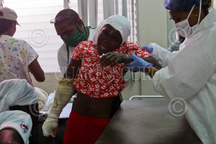 PUERTO PRÍNCIPE, HAITI, 26ENERO2009.- Médicos cubanos, colombianos y españoles, atienden diariamente a un promedio de 300 heridos en el Hospital Universitario de La Paz. Cabe destacar que la delegación cubana de médicos estaba ya en Haití antes del sismo, por lo que fueron de los primeros doctores en responder a la emergencia provocada por el terremoto del 12 de enero. FOTO: ISAAC ESQUIVEL/CUARTOSCURO.COM