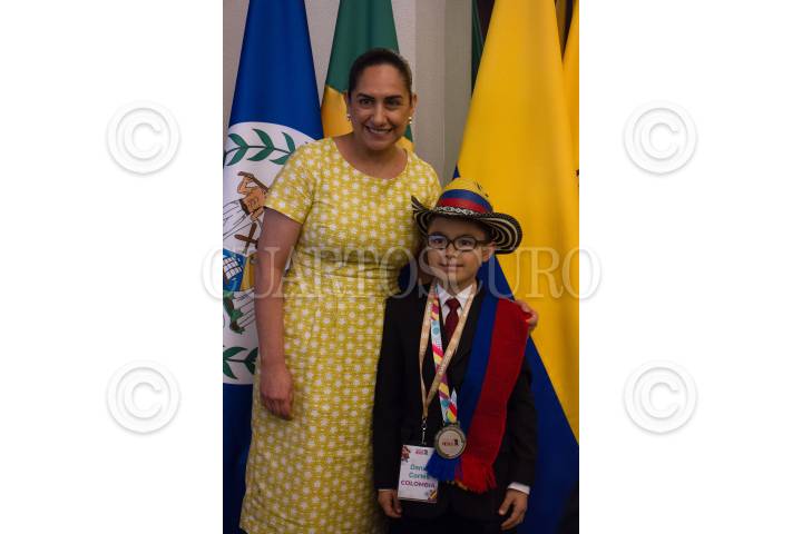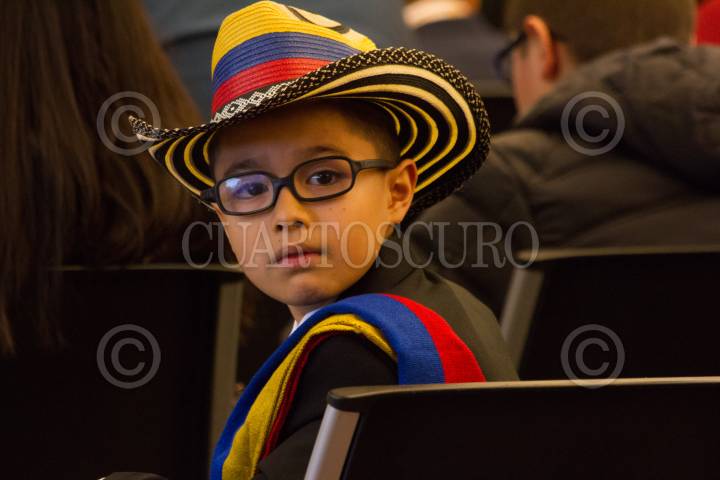 CIUDAD DE MÉXICO, 24JUNIO2019.- Alumno colombiano, durante la ceremonia de bienvenida a los estudiantes ganadores de los concursos de aprovechamiento y pintura infantil del Programa Escuelas México, cabe destacar que estas escuelas están ubicadas en distintos países de Sudamérica, el concurso premia a los mejores promedios y el desempeño artístico de los alumnos, esto en el Salón José María Morelos y Pavón de la SRE. FOTO: ROGELIO MORALES /CUARTOSCURO.COM