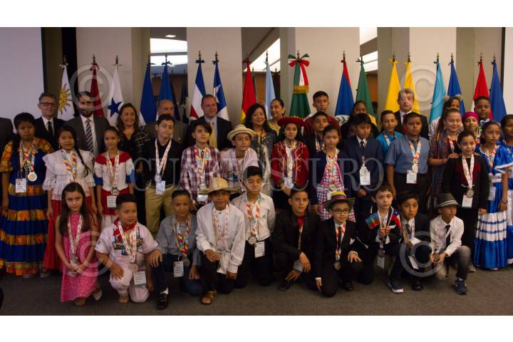 CIUDAD DE MÉXICO, 24JUNIO2019.- Ceremonia de bienvenida a los estudiantes ganadores de los Concursos de aprovechamiento y pintura infantil del Programa Escuelas México, cabe destacar que estas escuelas están ubicadas en distintos países de Sudamérica, el concurso premia a los mejores promedios y el desempeño artístico de los alumnos, esto en el Salón José María Morelos y Pavón de la SRE. FOTO: ROGELIO MORALES /CUARTOSCURO.COM