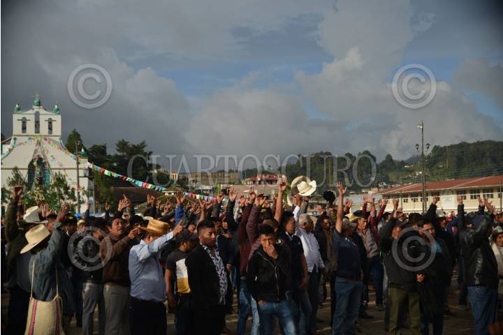 SAN JUAN CHAMULA, CHIAPAS, 25JUNIO2019.- Pobladores de 27 comunidades del municipio se reunieron en la Plaza San Juan Chamula para exigir el pago personalizado que el presidente municipal Ponciano Gomez Gomez prometió durante su campaña de siete mil pesos. FOTO: ISABEL MATEOS /CUARTOSCURO.COM