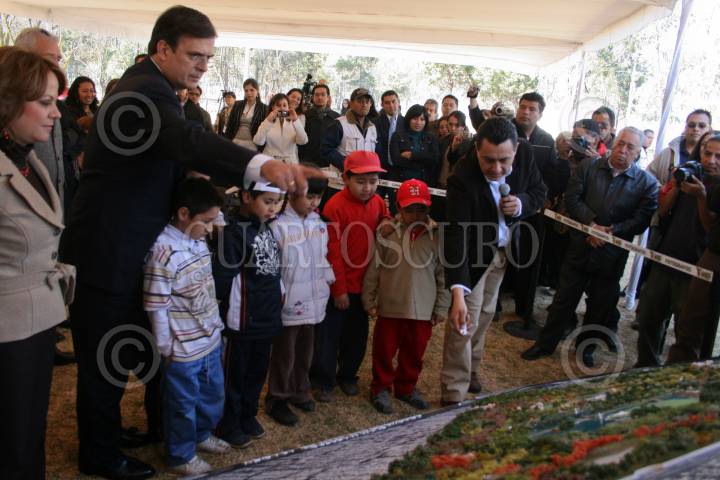 MÉXICO, D.F., 12DICIEMBRE2008.- Marcelo Ebrard jefe de gobierno del Distrito Federal anuncio hoy por la mañana que en el 2009 iniciaran los trabajos de reconstrucción y mejoramiento del Bosque de Aragon, con un plan maestro este proyecto promomete mejoramiento del lago, las cabañas, y un pasaje subterráneo donde para el tradicional trenecito, este proyecto tendra un costo aproccimado de 60 millones de pesoso FOTO: RICARDO CASTELAN/CUARTOSCURO.COM