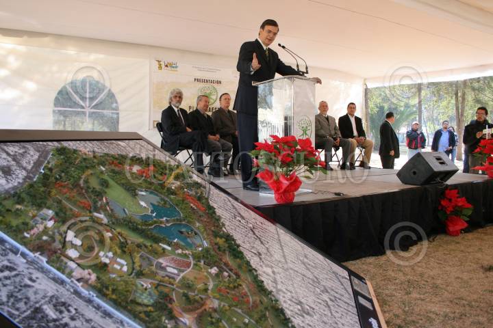 MÉXICO, D.F., 12DICIEMBRE2008.- Marcelo Ebrard jefe de gobierno del Distrito Federal anuncio hoy por la mañana que en el 2009 iniciaran los trabajos de reconstrucción y mejoramiento del Bosque de Aragon, con un plan maestro este proyecto promete mejoramiento del lago, las cabañas, y un pasaje subterráneo donde para el tradicional trenecito, este proyecto tendrá un costo aproximado de 60 millones de pesos FOTO: RICARDO CASTELAN/CUARTOSCURO.COM