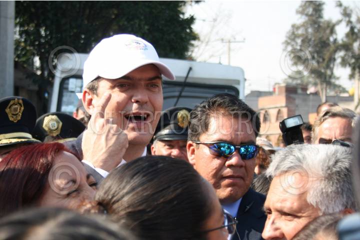 MÉXICO, D.F., 12DICIEMBRE2008.- Marcelo Ebrard jefe de gobierno del Distrito Federal visito la colonia Pedregal de Santo Domingo una de las colonias mas marginadas de la delegación Coyoacan, donde les entrego patrullas módulos de salud y prometió la construcción de pozos para solucionar el problema de la escasees de agua. FOTO: RICARDO CASTELAN/CUARTOSCURO.COM