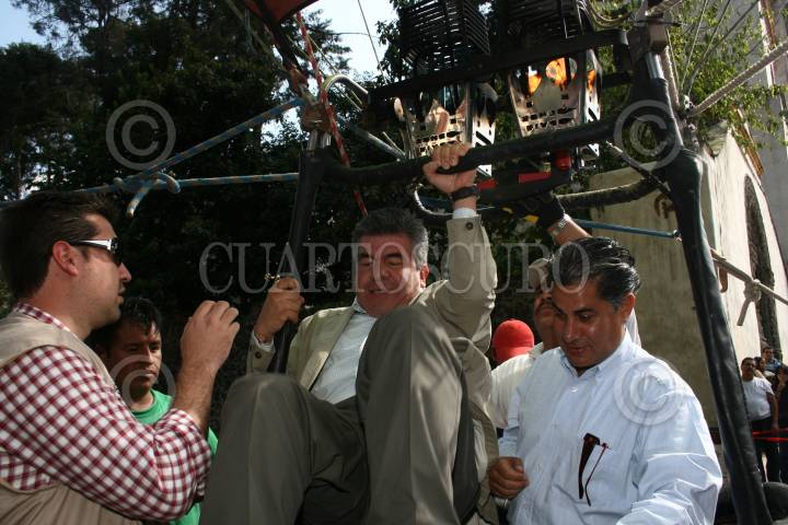 MÉXICO, D.F., 20NOVIEMBRE2009.- Carlos Orvañanos Rea, delegado de Cuajimalpa, acudió a la explanada de la delegación cuajimalpa donde fue expuesto el globo aerostático promocional de la Ciudad de México, Mariachi. FOTO: SÁSHENKA GUTIÉRREZ/CUARTOSCURO.COM