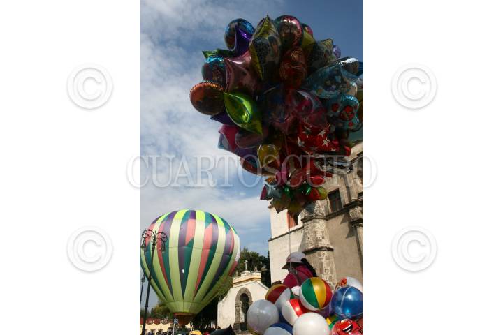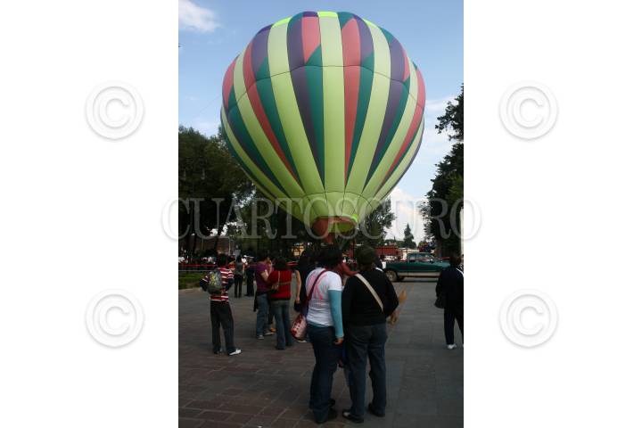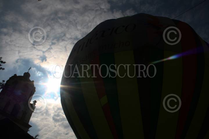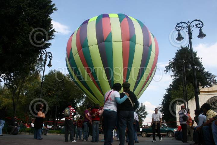 MÉXICO, D.F., 07NOVIEMBRE2009.- Esta mañana la secretaria de turismo del Distrito Federal encabezada por su secretario Alejandro Rojas Duran acudió a la exhibición del globo aerostático promocional de la Ciudad de México, donde decenas de personas se dieron cita en el jardín Hidalgo de la delegación Coyoacan. FOTO: SÁSHENKA GUTIÉRREZ/CUARTOSCURO.COM