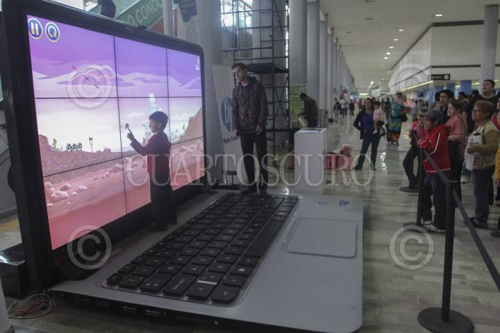 MÉXICO, D.F, 05ABRIL2013.- Una compañía de computadoras muestra promociona sus nuevos productos en el aeropuerto internacional de la Ciudad de México. FOTO: SAÚL LÓPEZ /CUARTOSCURO.COM