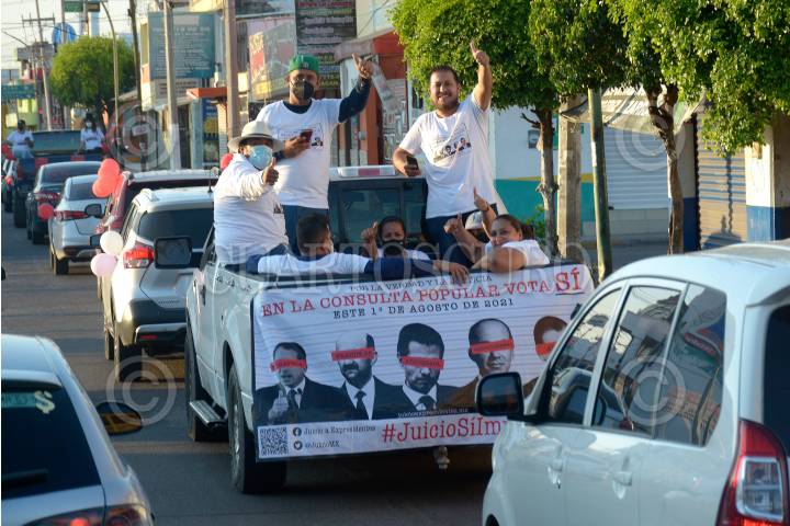En forma simultánea, ciudadanos realizaron caravanas de vehículos en las principales ciudades de Sinaloa para promover la consulta popular para juzgar a los ex presidentes de México.