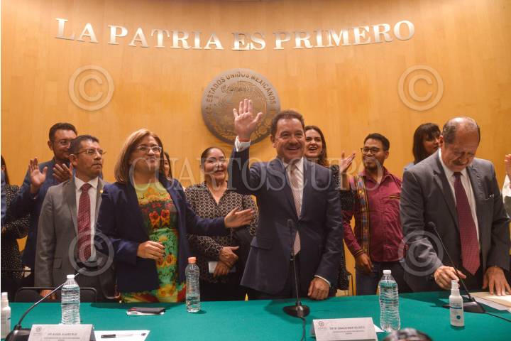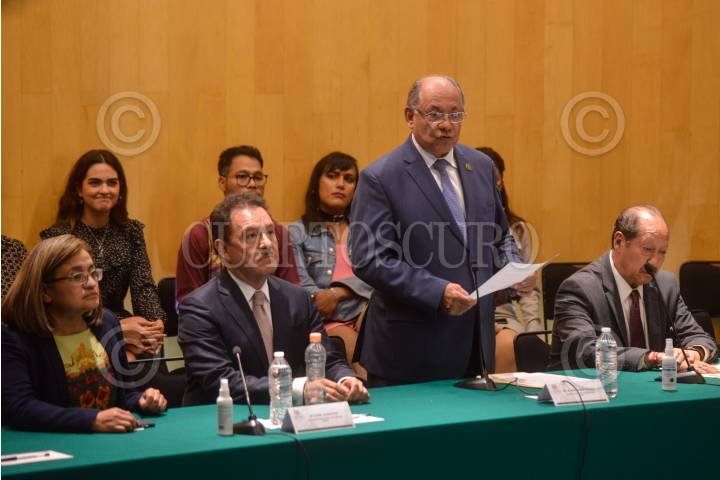 Ignacio Mier, diputado y coordinador de Morena, junto a Juan Ramiro Robledo, presidente de la comisión de Puntos Constitucionales y legisladores de Morena, se pronunciaron en contra del proyecto de la Suprema Corte de Justicia de la Nación que consta en invalidar la prisión preventiva oficiosa.